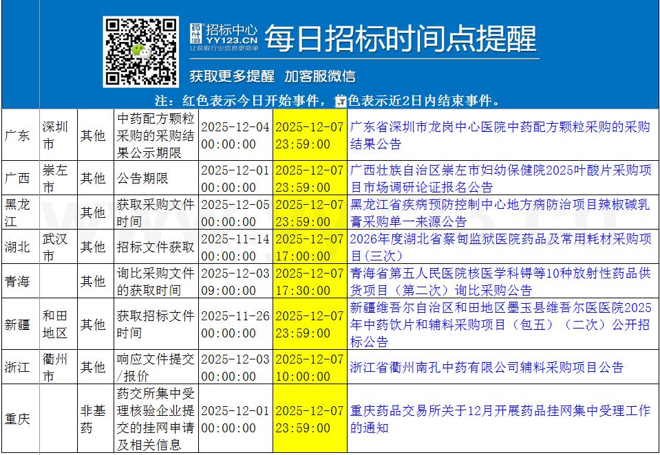 今日政策汇总与招标时间点提醒12月6日-12月8日